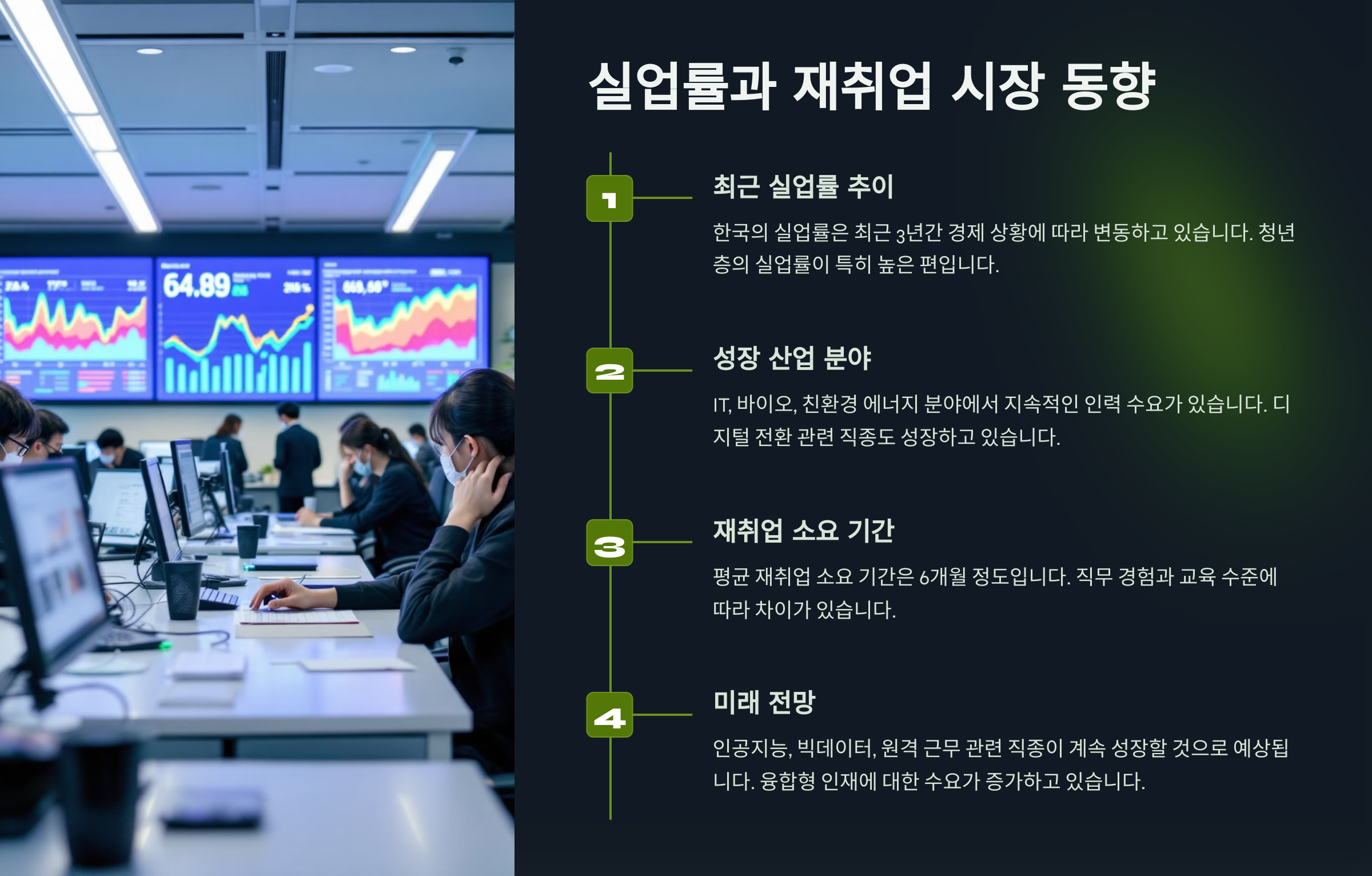 하지만 긍정적인 변화도 있어요! 정부와 기업들이 적극적으로 재취업 지원 프로그램을 운영하고 있으며, 비대면 근무와 프리랜서 시장이 확대되면서 새로운 일자리 기회도 늘어나고 있답니다. 🚀